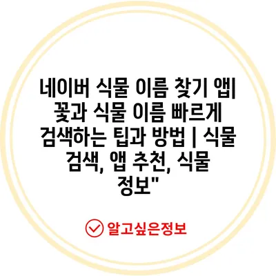 네이버 식물 이름 찾기 앱| 꽃과 식물 이름 빠르게 검색하는 팁과 방법 | 식물 검색, 앱 추천, 식물 정보”